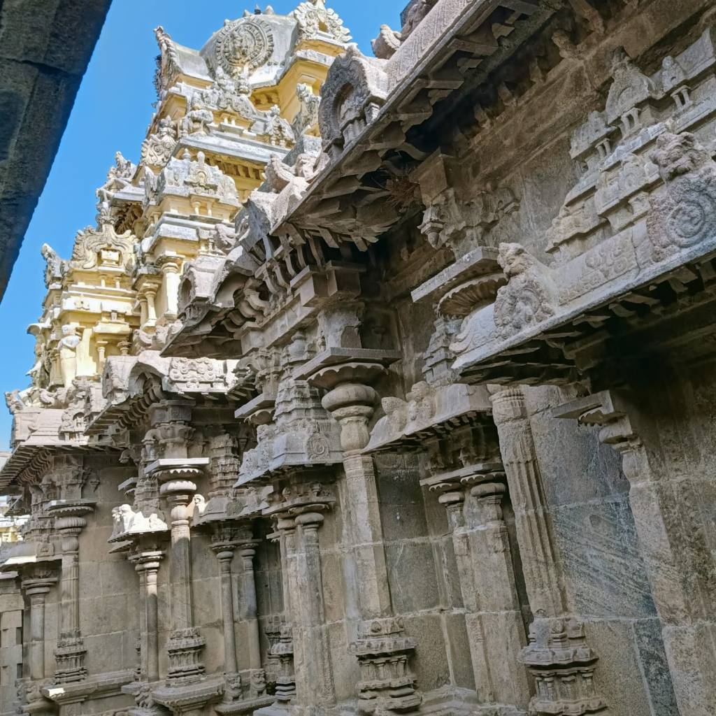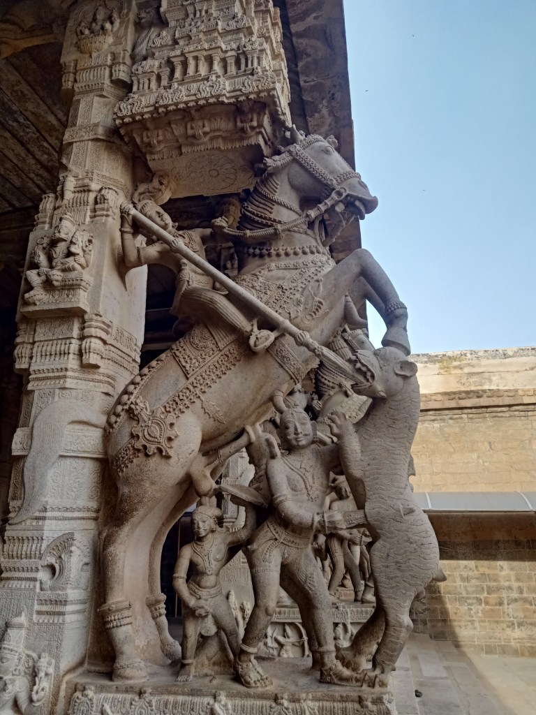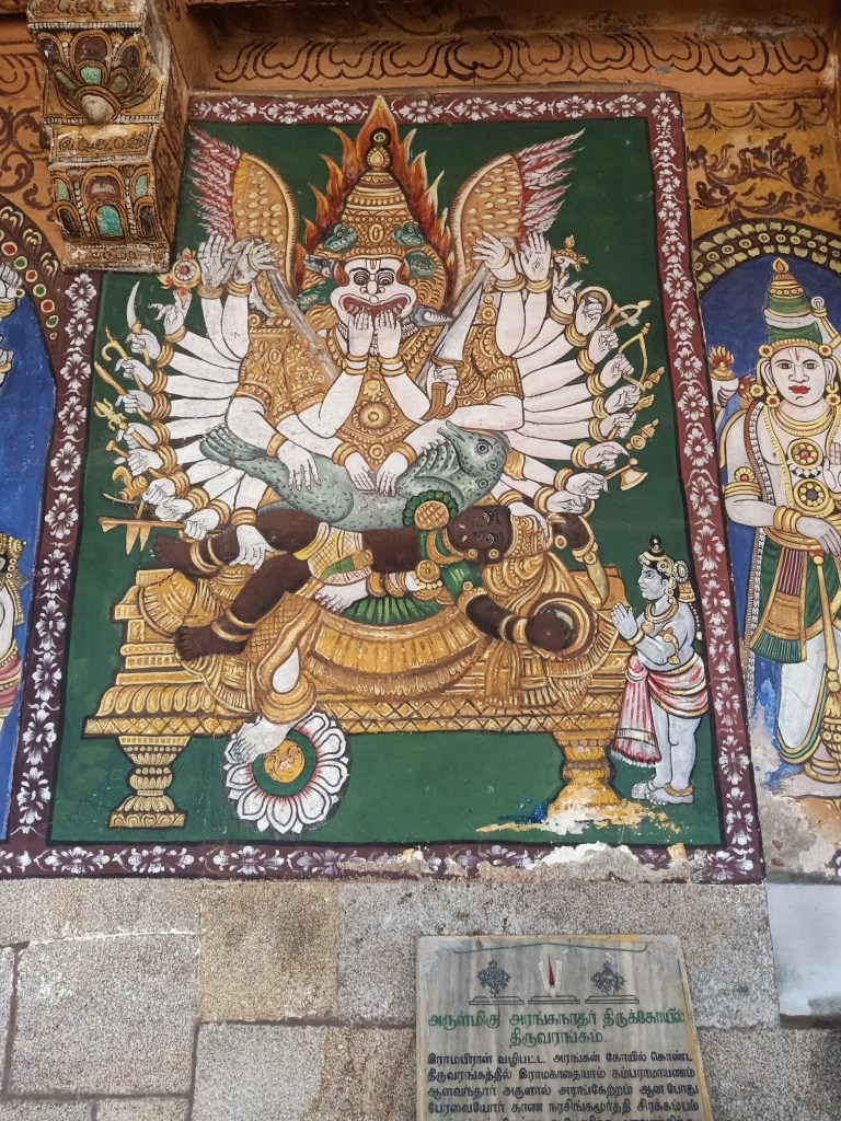 At first, we start with the Srirenganatha Swamy Temple. Given that this temple presents in multiple layers within the Srirangam island, tucked between Kauvery and Kollidam it would require at the least one year of vacation to enjoy the special festivities that are hallmarks of the traditions of this temple. Within this temple, are gopurams, mandapams, tanks, various mutts, veda and prabhanda patasalas, gardens galore. Alternatively, if you are young and healthy, the year can be sub-divided into specific time periods and one can see a certain section of the temple at a specified month of a year. The beautiful sesharayan mandapam sports so many sculptures.