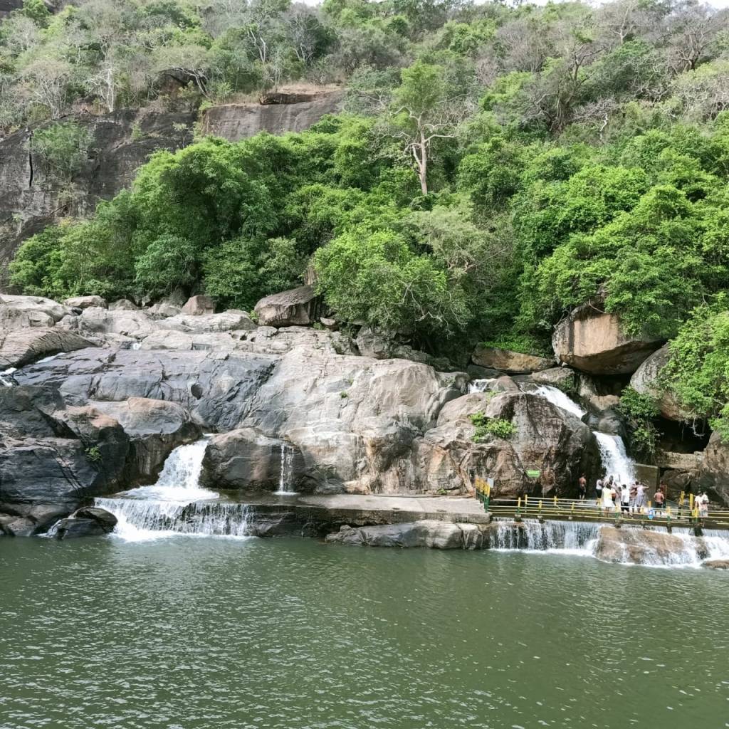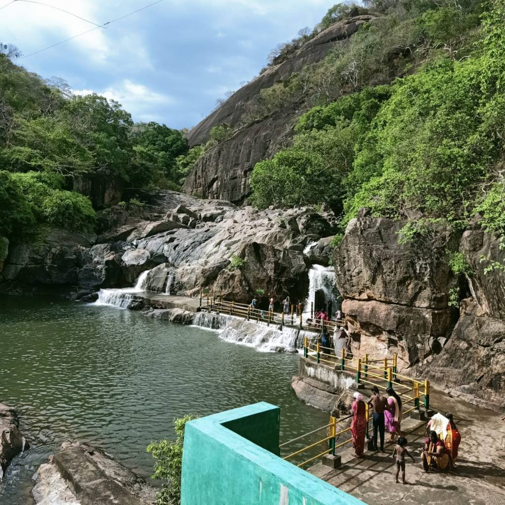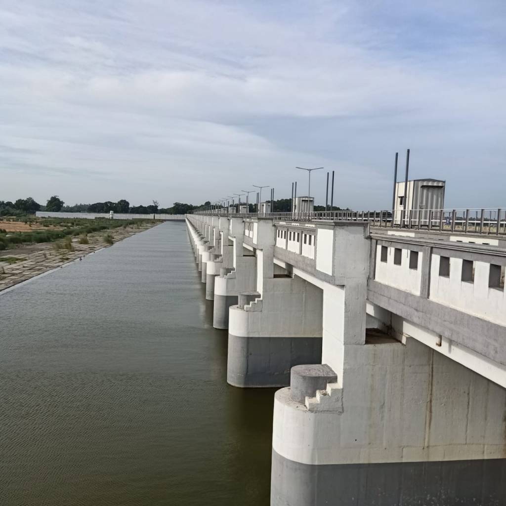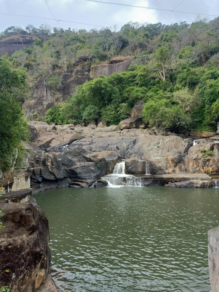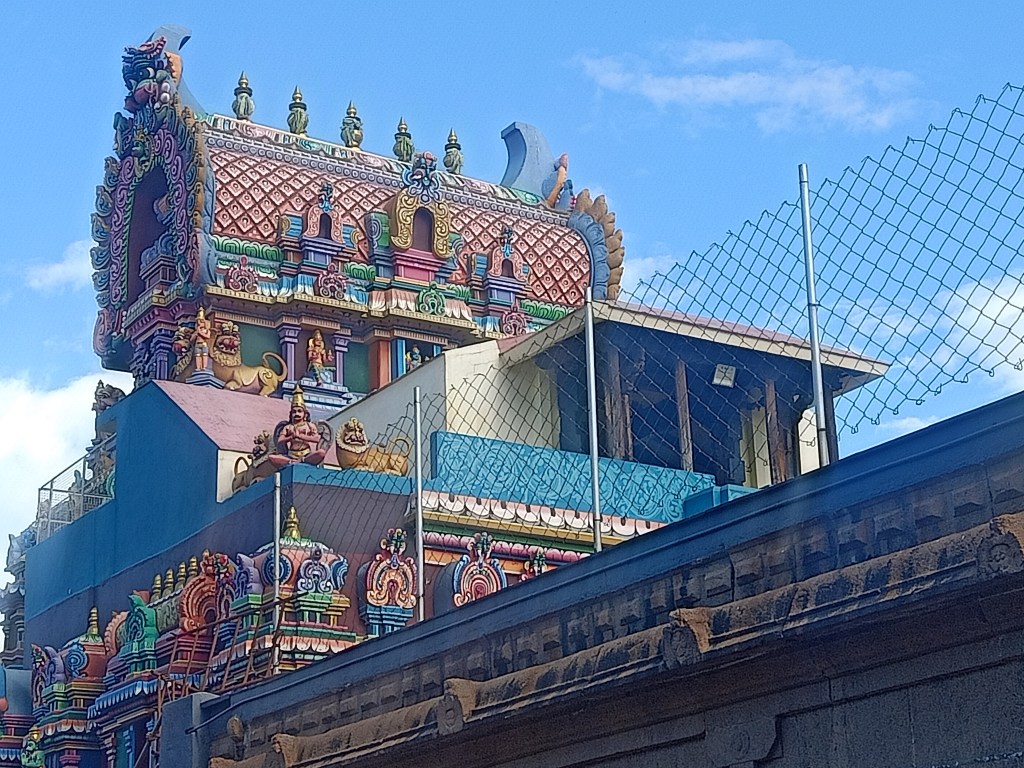 After spending two days in Srirangam, a trip to Kallanai Dam can be quite exciting. This dam is about 20 km away from Srirangam built sometime in 2nd century is a working dam from centuries ago. It can be approached through roads running along either one of the banks of Cauvery, although at the time of our visit we used the southern bank, as the movement along the northern bank was not allowed due to the construction of a new bridge. Upon reaching the dam one can park their vehicle at one of the two designated spots on either side of the river. At Kallanai, one can see that the waters branch in the southern direction, eastern direction and the excess is directed through the north-easterly direction to Kollidam. Two designated swimming pools (basically, a part of the flowing river is surrounded by grills with concrete flooring), on either side of the Vennar (the river that proceeds to the east and located in the middle) enables one to enjoy the river (check to ensure that there is water flowing here before visiting). This is the eastern most tip of the island of Srirangam.