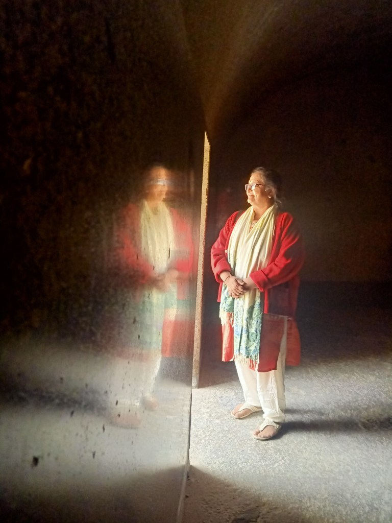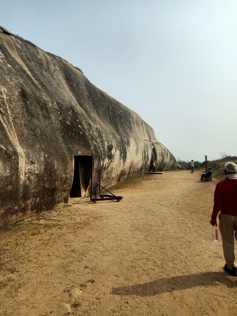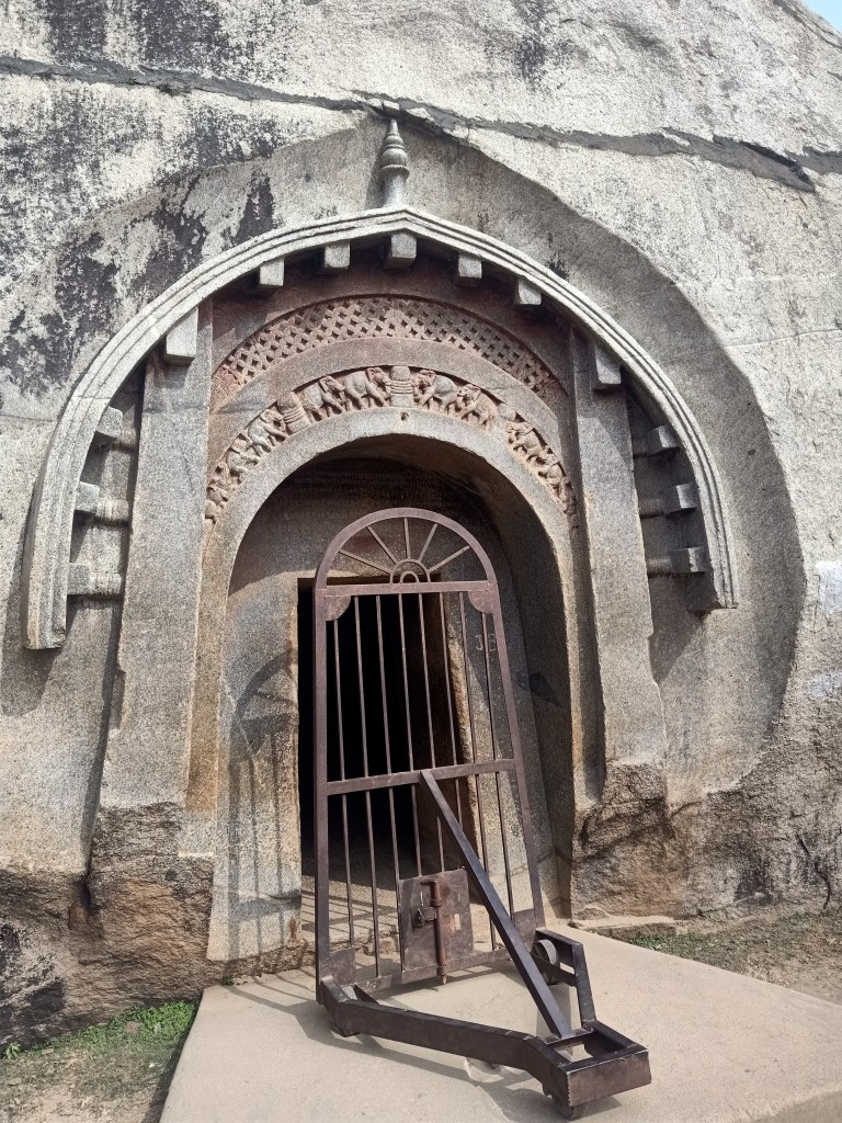 A hidden gem which houses one of the most exquisite site that showcases the brilliance of the architects who lived about 2300 ago. 40 km on the Bodhgaya to Patna Highway we took a right turn and drove through few villages to Barabar, Sultanpur, Bihar. These caves have been given GI tags from both ASI and GSI. The caves are located in a range which happens to be the second oldest rock formation in the world. The rocks are rich in iron pyrites. At the entrance we were greeted by a Guide (Bihar State) who indicated that the charge was 500. After climbing about 100 steps we reached the first set of caves in a rock shaped like a crocodile. The entrance to the cave is about 6 feet by 3 feet. The outer surface is rough but the inner was smooth and reflective. The touch and feel indicated that a reasonably smoothened inner wall may carry an organic coating from plant as polishing to obtain a smooth surface finish is likely to have taken a large number of skills men (that the cave size would not accommodate) or months if not years to carry out the same. The caves are cut inside out and in a form of a long hall without any windows. The first cave had a single chamber with a stone bed at one end. We went around and entered the second cave. This had an additional inner chamber made in perfect circle in which the echo was pronounced (seven times). There is an inscription saying these caves were donated to the Ajivikas sect of Jains by Ashoka on his 19th year of coronation. It was quite an experience reciting and listening to our echo. The third cave appears to have cracked while it was being excavated. The entrance to this cave had letters in Brahmi to the effect that it was carved in the 19th year of Ashoka’s rule. It is important to take the service of the guide to appreciate these caves. There were more and these were located at greater heights. We decided to close our shop at this point of time. I was happy that we could visit a monument that was 2300 years old with incredible rock-cut art/architecture (such a smooth finish and lovely echo to cherish).