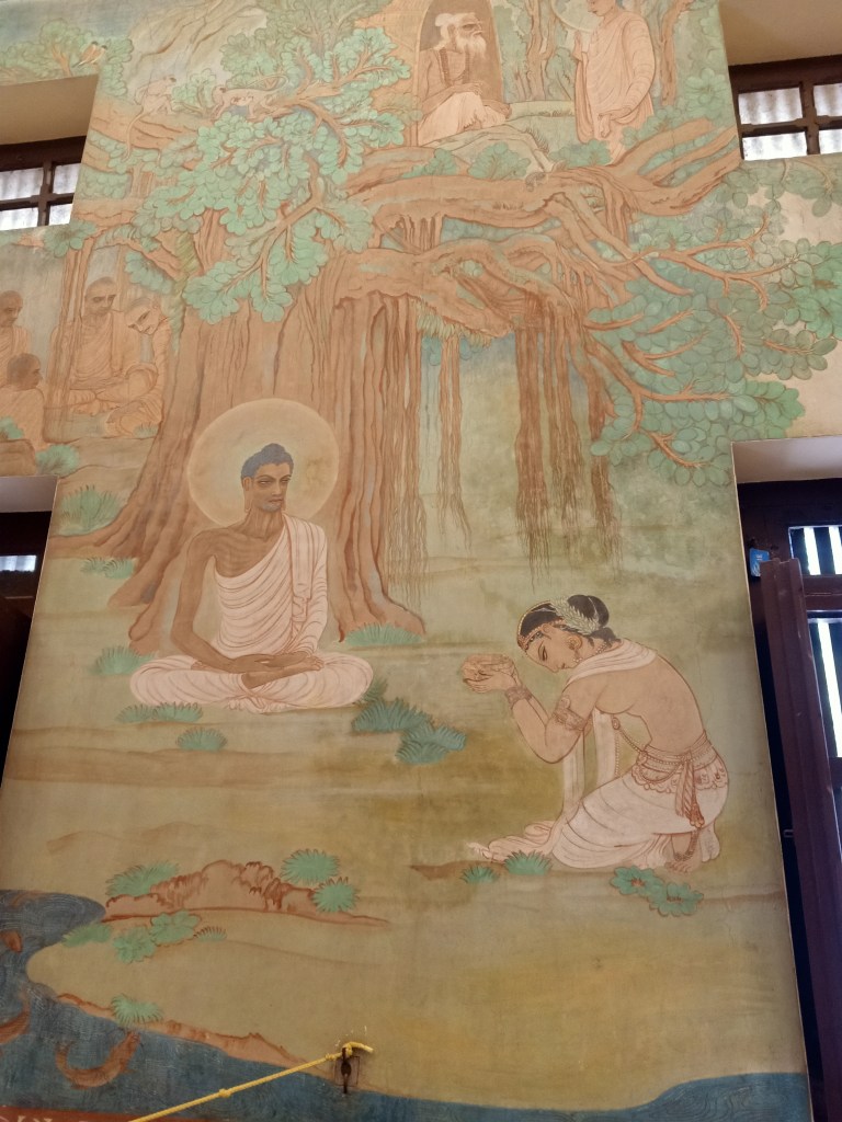 Bodhgaya is like a headquarters of the Buddhist religion. A number of countries have established their own Buddha temple and thus there are around 20 such temples. We visited temples of Cambodia, Thailand, China and Japan. There are huge monasteries with monks in training. All of them were clean, beautifully maintained and very artistic. The. Murals on the walls, the Buddha statues were different and were in accordance with that particular stream of buddhism. There was also an eighty feet Buddha statue constructed by our government in a big park.